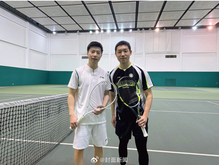 【#许昕马龙网球场合照#】#许昕马龙球场见结果是网球场# 1月22日,@许昕 晒与马龙@captain龙 在网球场的合照并配文:“天天说球场见?tennis见也是球场见吧?”